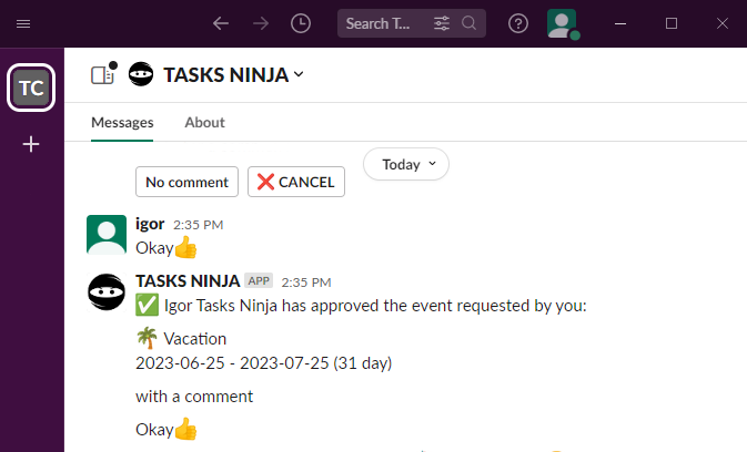 Approve vacations and other events in your favorite work messengers like Slack or Telegram