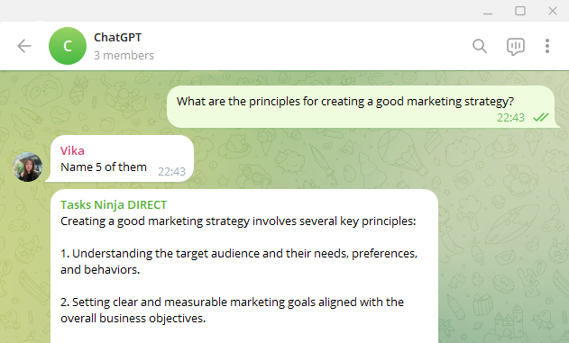 Just one registered Tasks Ninja user is sufficient for all participants in the group chat to use ChatGPT