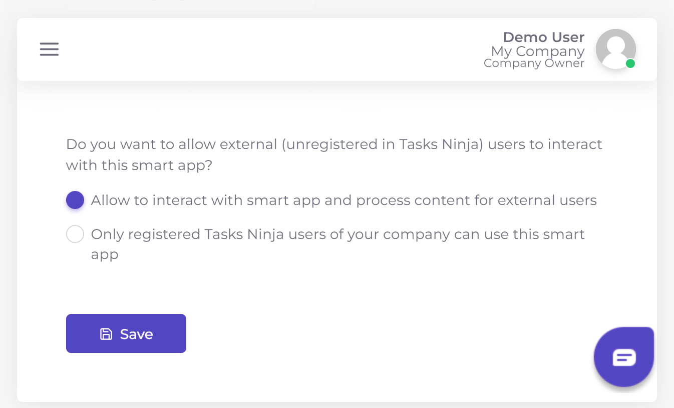 You can allow external users in your group chat to use smart apps and can also prohibit them from using the smart app if you wish