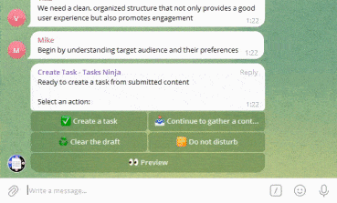 It's easier to collect and include all materials while creating a new task in a group chat with a team